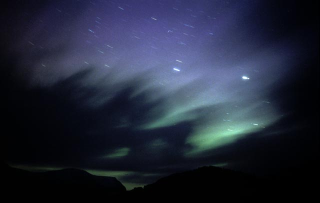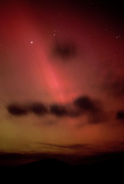 AURORA from SCOTLAND on April 4th-7th, 2000The Aurora images below were all taken by Chris ProctorThese two auroral displays were photographed from Inchnadamph in NW Scotland. The pictures were all taken using a fixed camera with a 50 mm f 1.8 standard lens.