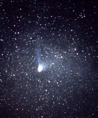 Taken from Hope's Nose, Torquay, Devon on 1997 February 8th at 06:00 UT with a 5 minute exposure using an 85mm, f1.9 lens onto Ektachrome Elite II 400 iso. Scanned at 200dpi.