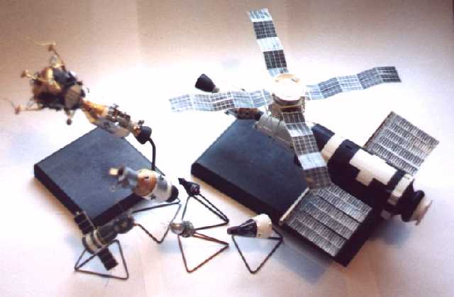 'Scratch-built' models of Skylab, Apollo 13, Apollo/Soyuz, Vostok, Mercury and Gemini capsules in 144th scale.