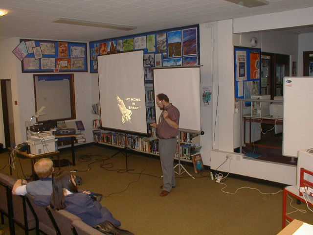 The lecture programme commenced at mid-day with a fascinating and humorous explanation of what it's like to be "At Home in Space" presented by our special guest David Shayler. David is a prolific space and astronomy author, including titles such as "Disasters and Accidents in Manned Space Flights", "Gemini - Steps to the Moon" and "Skylab - America's Space Station". He also co-authored with Rex Hall on "The Rocket Men - Vostok & Voskhod, The First Soviet Manned Spaceflights". The next two talks (either side of lunch) were by TAS chairman David Norman. The first examined some of the amazingingly detailed images from the new advanced camera on board the Hubble Space Telescope. The second looked at the techniques used to detect 'extrasolar' planets (those around stars other than our Sun). Dave presents a monthly spot covering spaceflight and astronomical events on BBC Radio Devon. The next talk was by John Parratt of North Devon Astronomical Society. John covered the past history of the North Devon AS and looked forward to its future plans for a major new observatory. This was followed by a presentation from Exeter Astronomical Society on their successful use of video cameras to capture dynamic astronomical events such as lunar occultations. After a break for tea our second major talk of the day was presented by astronomical writer Paul Money. Paul was here at the school for the 1999 eclipse and has written many articles for the astronomical press (including one featured recently in "Astronomy Now" on his completing a full Messier Marathon down at COAA in Portugal). The wide-ranging subject of Paul's talk was "The Wonders of the Universe!", and took us on an illustrated tour from the viewpoint of a photon of light travelling from the farthest reachs of the universe to the Earth. To finish off the lecture programme and prepare us for our evening of observations, Dr Chris Proctor (TAS Observations Secretary) did a talk on 'The Night Sky'. Chris has done a lot of excellent work with both conventional film photography and CCD imaging over the years. Many of these images feature in the gallery section of the TAS web-site at http://torbayastro.org.uk. At 7pm the barbeque got under way. As last year, this proved a great social success with a number of family guests visiting us for the evening session. At 8pm the excitement really began with the rocket launching event! Several rockets were brought along from the school, members of the society and visitors. In fact, we had two launch pads set up and were still pushed to get all the rockets launched while the light lasted! Everybody loved this and all present helped with the countdowns! Finally, the observatory was opened up and observations of the moon and other night-sky objects began. We were also presented with the possibility of seeing a close fly by of a near-Earth asteroid (2002 NY40) during the night and early hours of Sunday morning. Our second AstroWest went very well, with much better weather than last year. Once again the campers all said how much they enjoyed the weekend and wanted to come back next year. Here's looking forward to AstroWest 2003! |