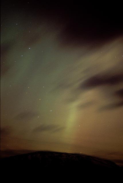 The first two pictures below are of a quiet auroral display seen on the night of 4th - 5th April 2000.