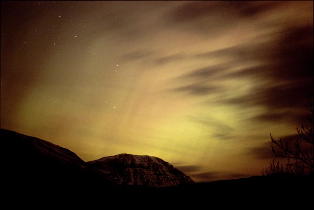 AURORA from SCOTLAND on April 4th-7th, 2000The Aurora images below were all taken by Chris ProctorThese two auroral displays were photographed from Inchnadamph in NW Scotland. The pictures were all taken using a fixed camera with a 50 mm f 1.8 standard lens.