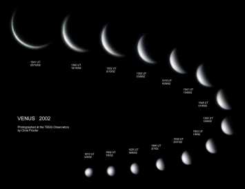 A composite sequence of images of Venus photographed with the 50 cm reflector at the TBGS Observatory during its evening apparition between early May and late October 2002.